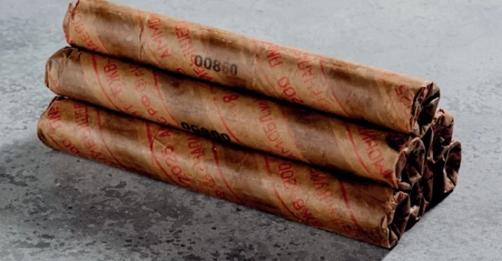 Заряды промышленного взрывчатого вещества в патронах.